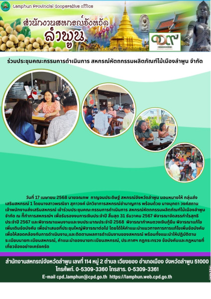 ประชุมคณะกรรมการดำเนินการ สหกรณ์หัตถกรรมผลิตภัณฑ์ไม้เมืองลำพูน จำกัด