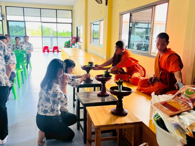 ทำบุญถวายเทียนพรรษา ผ้าอาบน้ำฝนและจตุปัจจัยเครื่องไทยธรรม