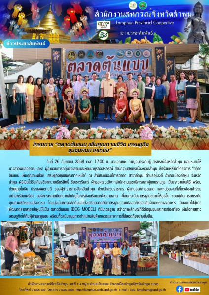 โครงการ “ตลาดต้นแบบ เพิ่มคุณภาพชีวิต เศรษฐกิจชุมชนคนภาคเหนือ"