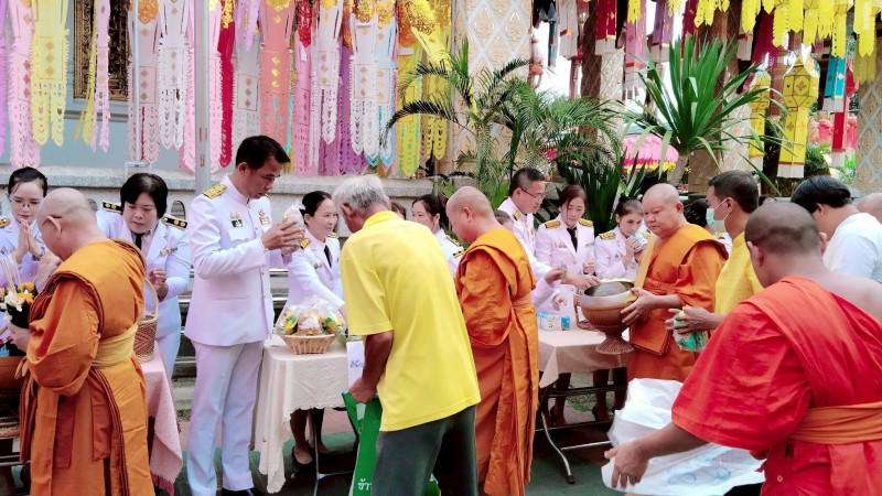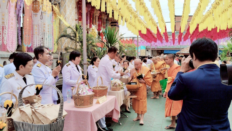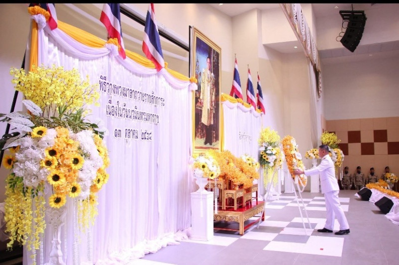 พิธีทำบุญตักบาตรและวางพวงมาลาถวายราชสักการะ เนื่องในวันนวมินทรมหาราช ประจำปี 2568