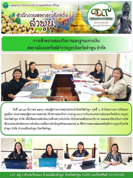 ตรวจสอบกิจการและฐานะการเงินของสหกรณ์ออมทรัพย์ตำรวจภูธรจังหวัดลำพูน จำกัด