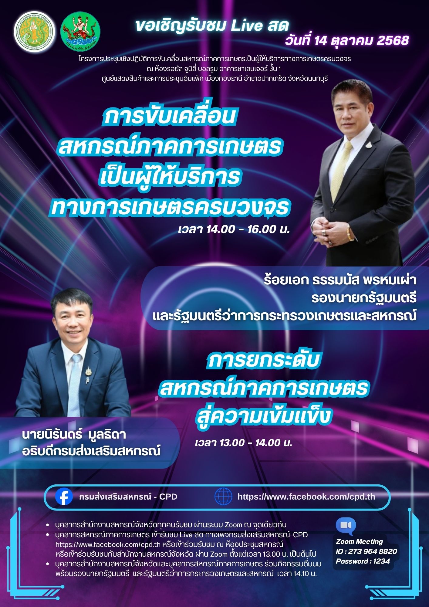 📢 กรมส่งเสริมสหกรณ์ ชวนรับชม Facebook Live ร่วมขับเคลื่อนสหกรณ์ภาคการเกษตรเป็นผู้ให้บริการทางการเกษตรครบวงจร 📌 วันอังคารที่ 14 ตุลาคม 2568 เวลา 13.00 น. FACEBOOK TWITTER LINE กรมส่งเสริมสหกรณ์ ชวนรับชม Facebook Live ร่วมขับเคลื่อนสหกรณ์ภาคการเกษตรเป็นผู้ให้บริการทางการเกษตรครบวงจร วันอังคารที่ 14 ตุลาคม 2568 เวลา 13.00 น.
